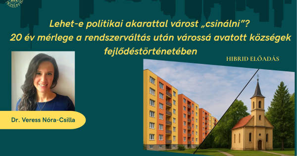 Megszokott ülését tartja az EME Természettudományi Szakosztálya 2025. október 16-án, csütörtökön délután 17 órától az EME székházának előadótermében.Dr. Veress Nóra-Csilla tart előadást, a "Lehet-e politikai akarattal várost „csinálni”? 20 év mérlege a rendszerváltás után várossá avatott községek fejlődéstörténetében" címmel, az 1989-es rendszerváltást követően a romániai városhálózat rövid idő alatt történő jelentős átstrukturálásáról.
