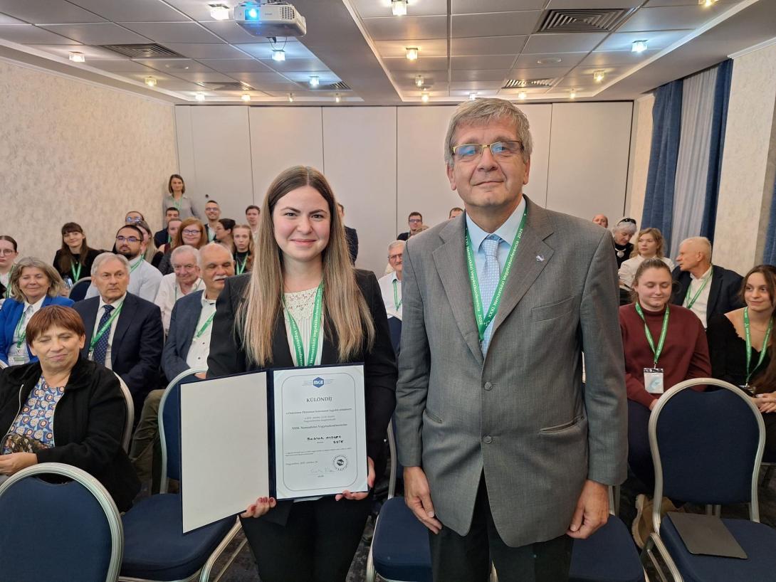 A díjat a Doktoráns Plénum keretében bemutatott legjobb előadásért ítélték oda. A rangos elismeréssel a díjazott felvételt nyer az MKE tagjai közé.