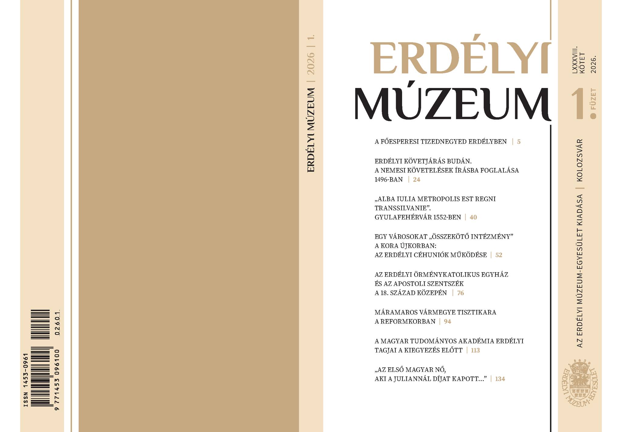 Megjelent az Erdélyi Múzeum folyóirat idei első száma, melyet Fejér Tamás szerkesztett.