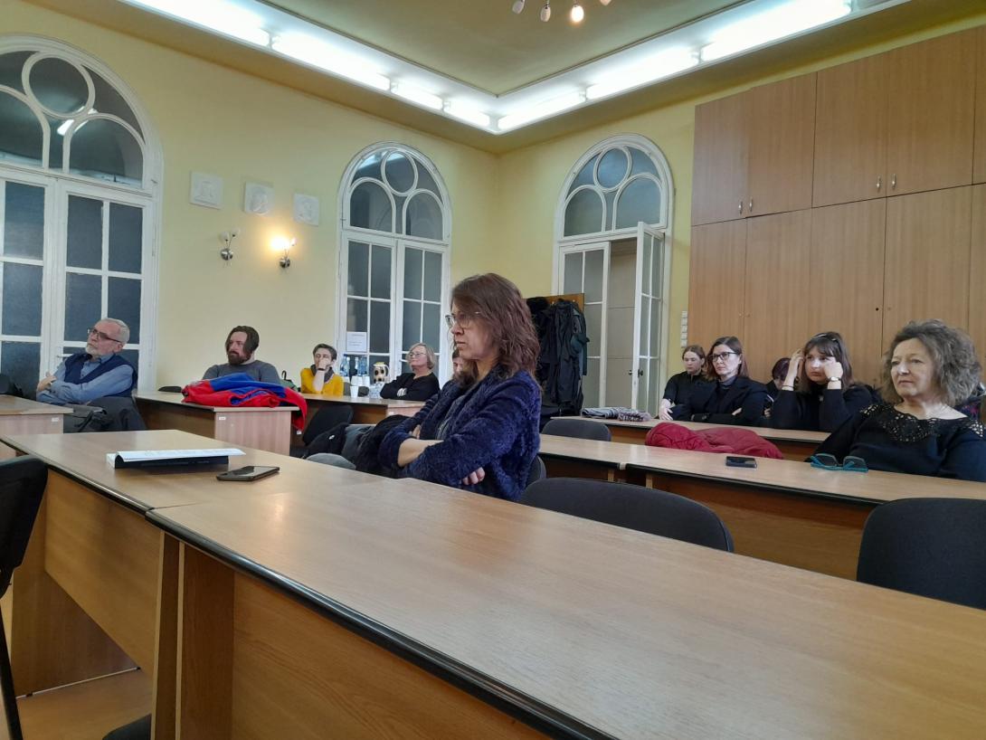 2026. február 25-én emlékezetes könyvbemutatón vett részt az érdeklődő közönség az EME Bölcsészet-, Nyelv és Történettudományi Szakosztálya, az MTA KAB Színháztudományi Szakbizottsága és a BBTE Magyar Színházi Intézete társszervezésében sorra kerülő eseményen. A Marosvásárhelyi Művészeti Egyetem másodéves bábszínész szakos hallgatói, Garaczi Rebeka, Kerekes Dorka, Kőrösi Áron, Szabó Tekla, Szalai Glória, Szilágyi Barnabás a képzeletbeli paraván leplezésében izgalmas etűdökkel vezették be a közönséget a kézjátékok világába. Azt a közösségiséget, a látás útján felfogható, de a test, a kéz és az anyag által színre vitt, váratlan megoldásokat és összefüggéseket kínáló világot érzékeltették gyakorlatban, amelyet az egyetemi oktató, teatrológus, bábművész Novák Ildikó legújabb könyvében értelmez. Novák Ildikót a Bábszínházi és színházi látleletek című, 2025-ben Kolozsvárt megjelent kötetéről munkatársa, a színházi szakíró Ungvári-Zrínyi Ildikó kérdezte. Az újabb bábjátékos etűdökkel tarkított beszélgetés a műfaj elméleti kérdéseit, hazai és külföldi oktatását, módszertanát, a gyakorlati és elméleti téren egyaránt működő szerző jártasságát, tapasztalatait érintette, a szakmabeliek, a műfajt tanulmányozó és iránta érdeklődő közönség figyelmébe ajánlva e hasznos kiadványt.