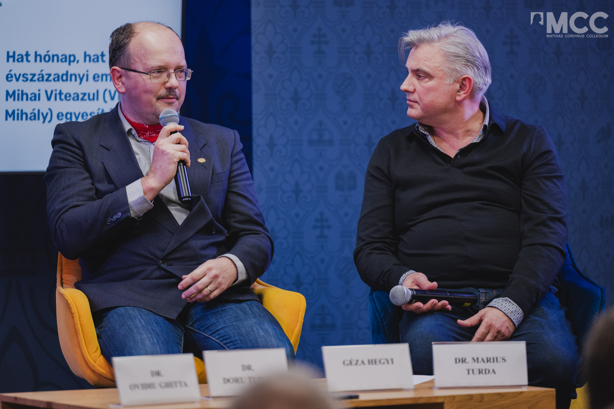Kutatóintézetünk tudományos munkatársa, Hegyi Géza 2026. február 17-én részt vett a Mathias Corvinus Collegium által Kolozsváron szervezett kerekasztal-beszélgetésen, melynek témája Vitéz Mihály havasalföldi vajda (1593-1600) működése és azon belül erdélyi uralma (1599-1600) volt, melyet a román történetírás nemzeti szemléletű vonulata hagyományosan a "három román állam" (ti. Havasalföld, Erdély, Moldva) első egyesítéseként szokott szemlélni. A beszélgetést, melyre a "Românii și maghiarii în oglinda istoriei comune" [Románok és magyarok a közös történelem tükrében] c. rendezvénysorozat harmadik alkalmaként került sor, dr. Marius Turda Oxfordban oktató román történész vezette, a beszélgetőpartnerek pedig dr. Ovidiu Ghitta (Kolozsvár, Babeș-Bolyai Tudományegyetem, egyetemi tanár) és dr. Doru Țuinea (Bukarest, Nicolae Iorga Történeti Intézet, kutató) voltak. A vajda erdélyi hatalomra jutása és itteni intézkedései mellett, szó esett a Szent Liga keretében vívott törökellenes küzdelemről (mint előzményről) és a korszak utólagos román, ill. magyar történeti emlékezetéről is.
