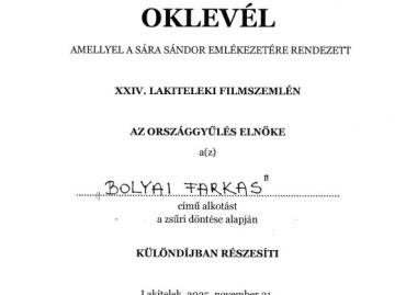 Díjat nyert a XXIV. Lakiteleki Filmszemlén a „Bolyai Farkas” alkotás
