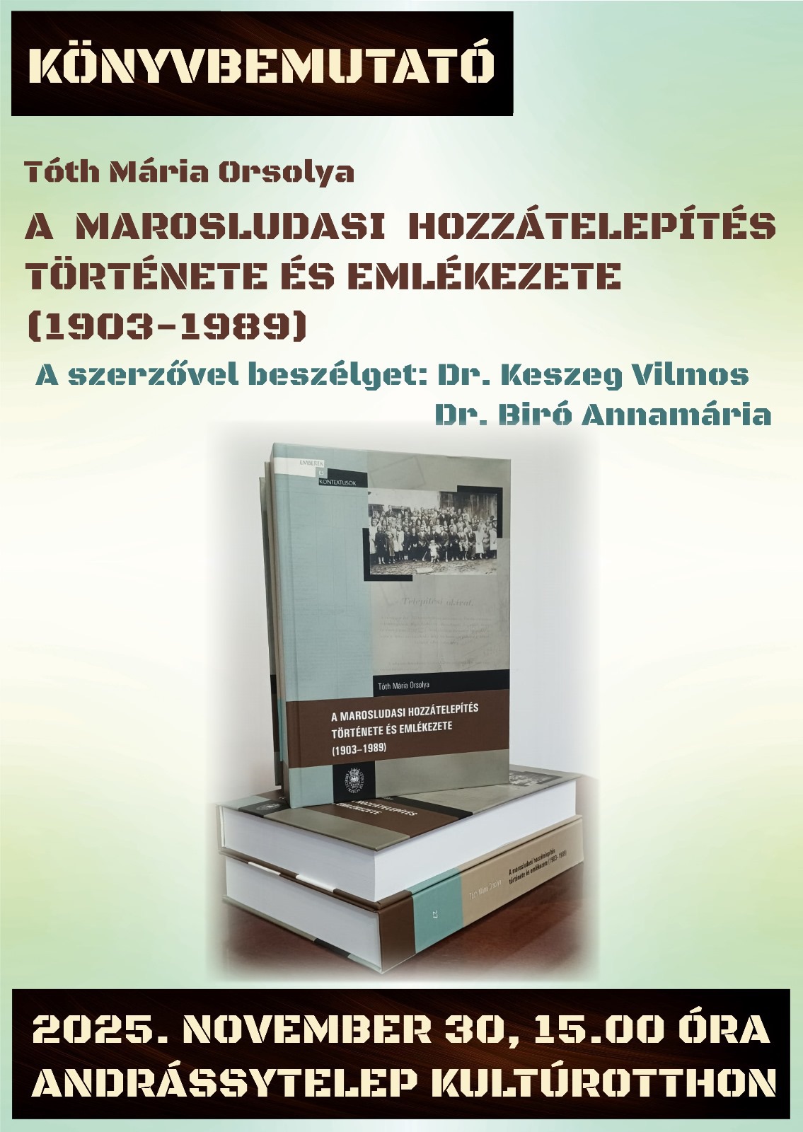 Tóth Mária Orsolya: A marosludasi hozzátelepítés története és emlékezete (1903-1989)