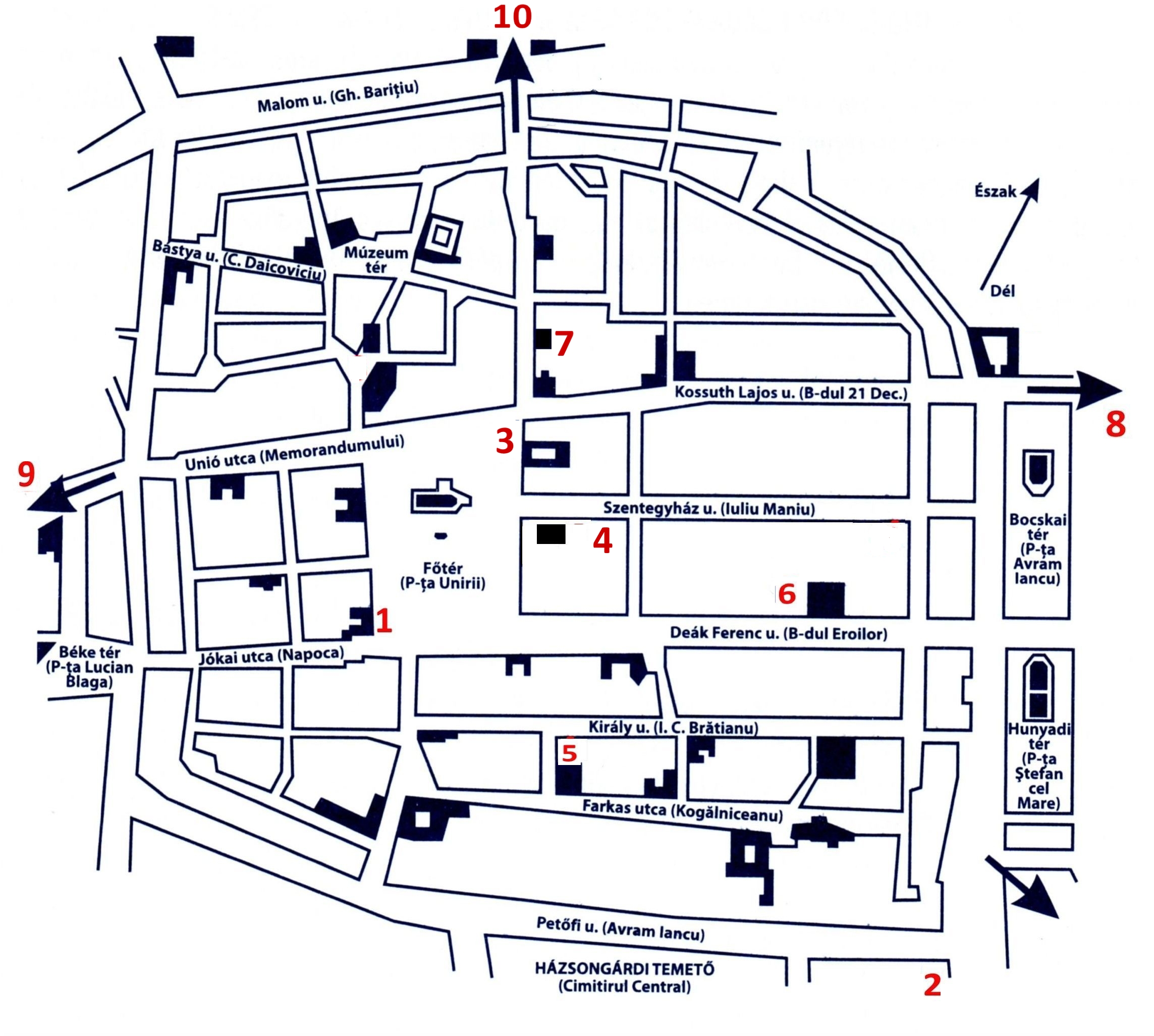 • I. szekció: az Erdélyi Múzeum-Egyesület székháza, Jókai/Napoca utca 2–4. szám