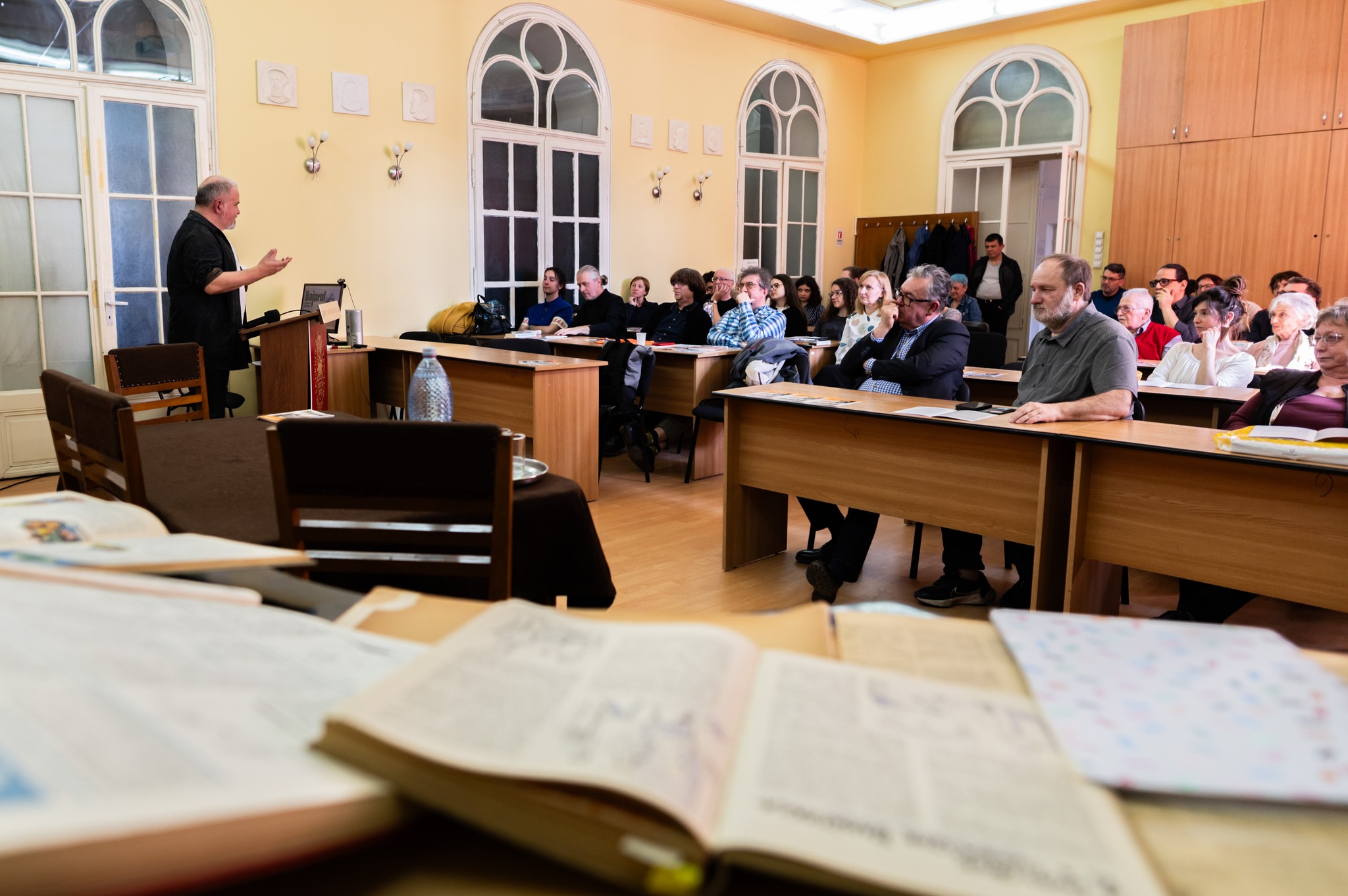 A szakmai tanácskozás szombat reggel az Erdélyi Múzeum-Egyesület székházának előadótermében folytatódott. Ezen a napon két szekcióban összesen 11 előadást hallhattunk. Az eseménynek otthont adó EME előadótermében a szekciókat élénk szakmai vita zárta, ahol a hallgatóság és az előadók közösen világítottak meg új nézőpontokat Bajor Andor életműve kapcsán.