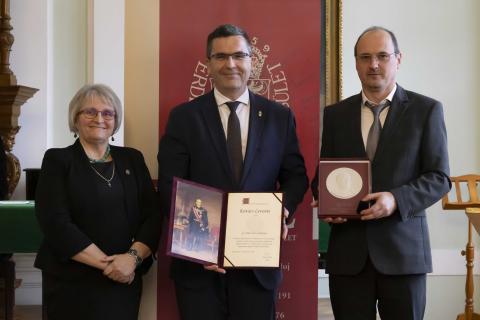 Kovács Levente, az Óbudai Egyetem rektora Gr. Mikó Imre-emléklappal tüntették ki