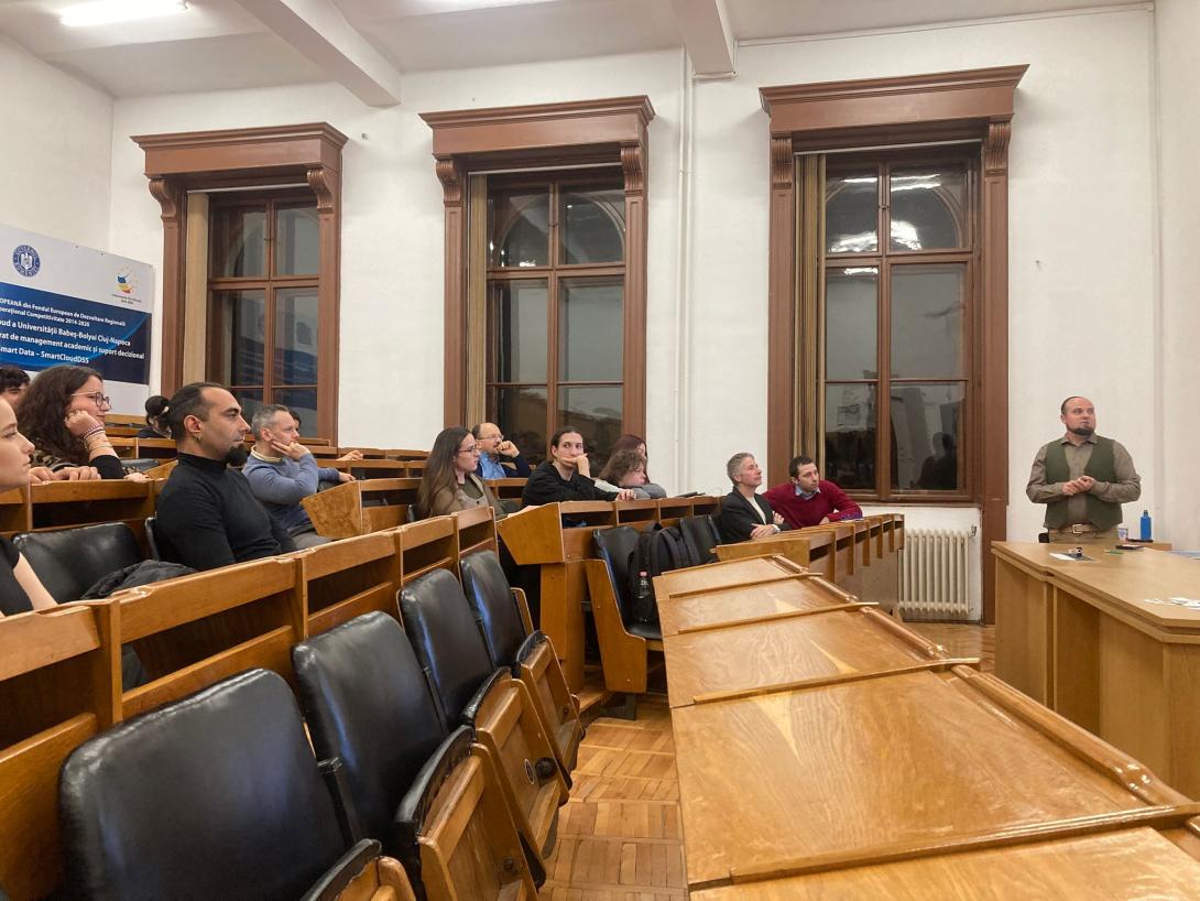 A BBTE Történelem és Filozófia Karán működő Hadtörténeti munkacsoport (Grupul de Lucru pentru Istorie Militară) és a Középkor és kora újkor szakkör (Cercul de Istorie Medievală și Premodernă) keretein belül került sor egy kerekasztal beszélgetésre a késő középkori és kora újkori források kutatásának nehézségei, valamint a mohácsi csatához kapcsolódó kutatási újdonságok témákban. A rendezvényen munkatársaink, Izsán Csaba és Hegyi Géza bemutatták a Jakó Zsigmond Kutatóintézet tevékenységét, illetve levezették a beszélgetést, amelyen a kar diákjai mellett részt vettek C. Tóth Norbert, az ELKH-MNL-SZTE Magyar Medievisztikai Kutatócsoport vezetője, Vlad Popovici és Cosmin C. Rusu, a BBTE Történelem és Filozófia Karának oktatói, Horváth Csaba, a Kolozs Megyei Könyvtár könyvtárosa, valamint Ciurica Matei, a kolozsvári Mareşal Constantin Prezan Hadtörténeti Múzeum munkatársa.